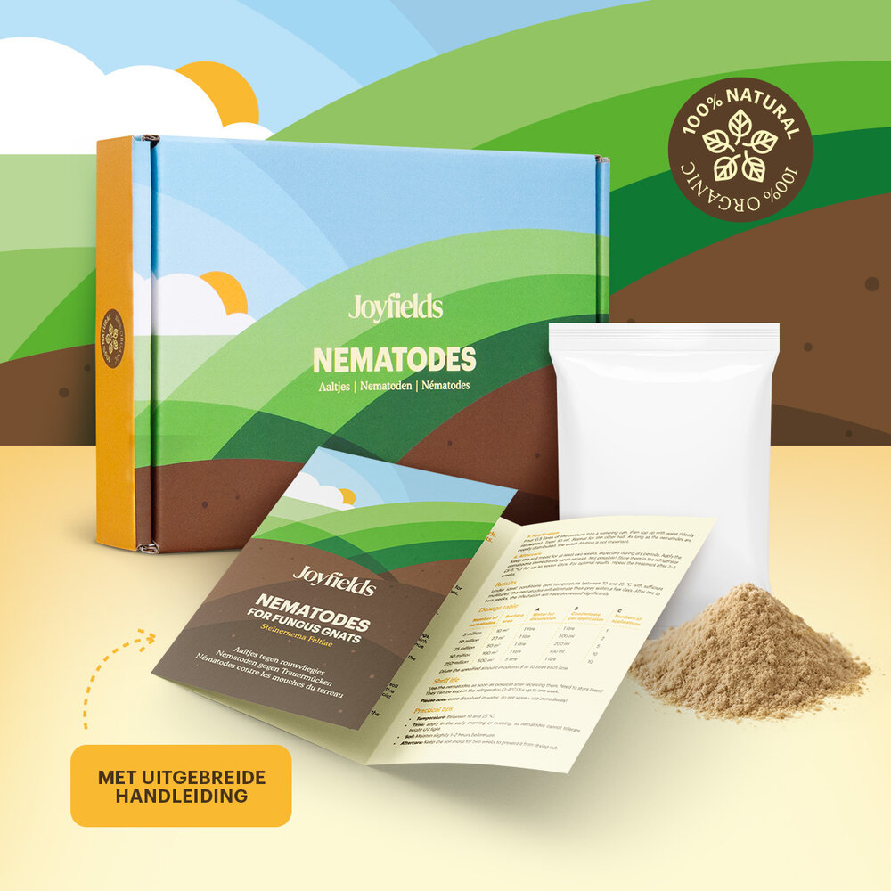 - Nazorg: Houd de grond minstens twee weken licht vochtig zodat de aaltjes hun werk blijven doen.