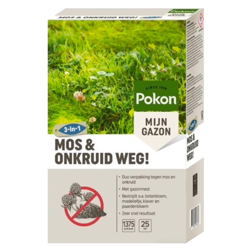 Iets minder bekend zijn de bestrijdingsmiddelen in korrelvorm. Een mooi voorbeeld hiervan is Mos & Onkruid weg! van het merk Pokon. Dit is een gazonmeststof met een directe werking tegen veelvoorkomende onkruiden als madeliefjes, klavers en weegbree. Ook heeft dit bestrijdingsmiddel dankzij het toegevoegde ijzersulfaat een indirecte werking tegen mos.